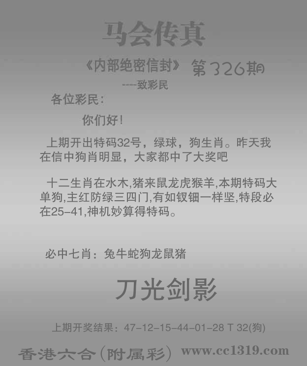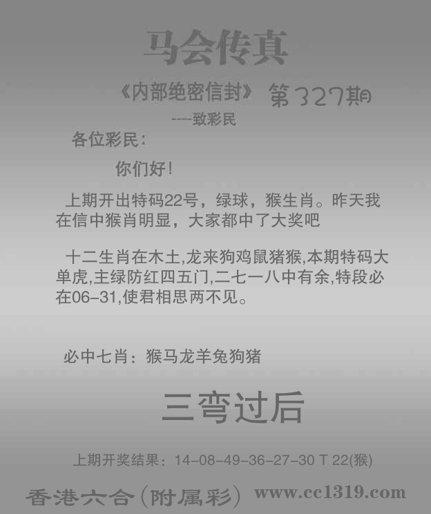 | 326期: ⑥肖 | 牛狗龙鸡蛇兔 | 猴22中 |