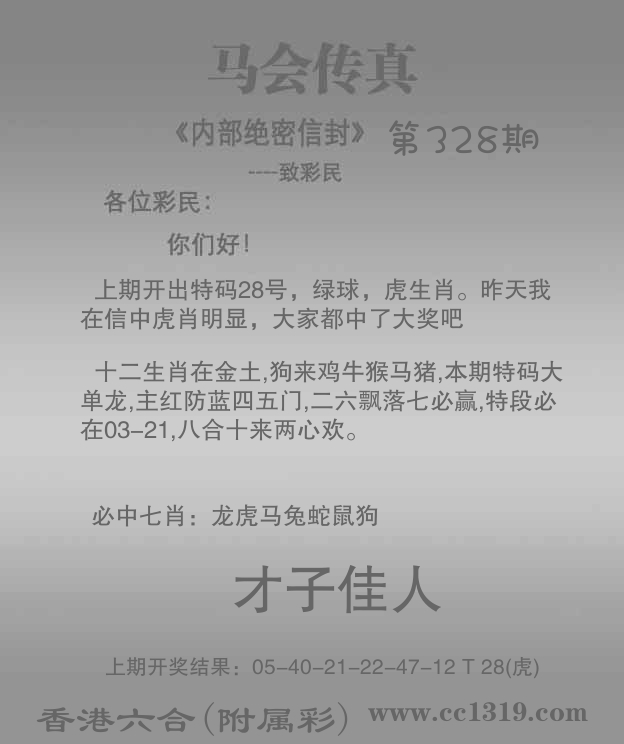 | 327期: ⑥肖 | 鸡兔羊龙猪狗 | 虎28中 |