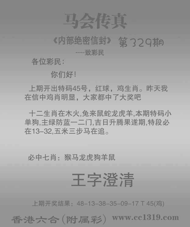 | 329期 | 鸡 | 3尾 | 蓝单 | 02-11 | 17牛 |