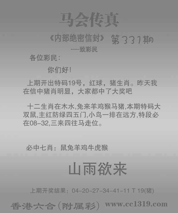 | 331期: ⑦肖 | 鸡虎猴蛇鼠马羊 | 羊23中 |