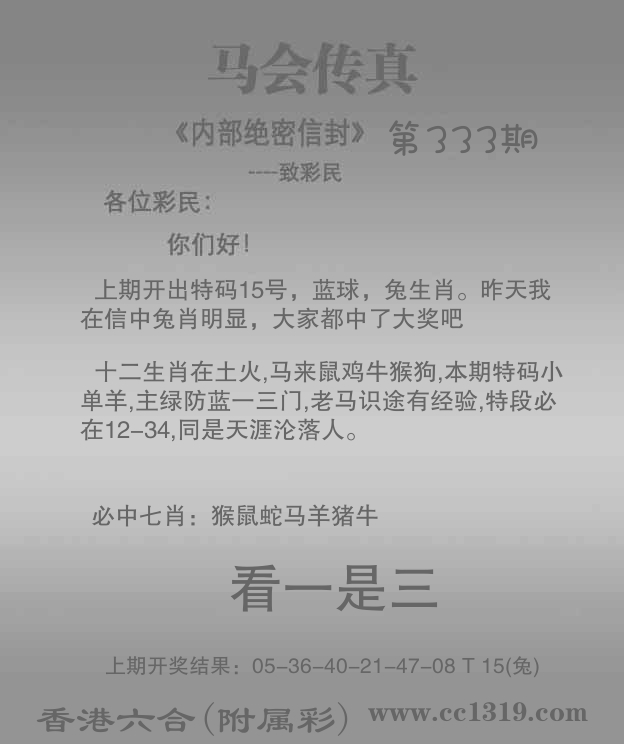| 333期: ⑥肖 | 虎狗龙鸡兔鼠 | 马48中 |