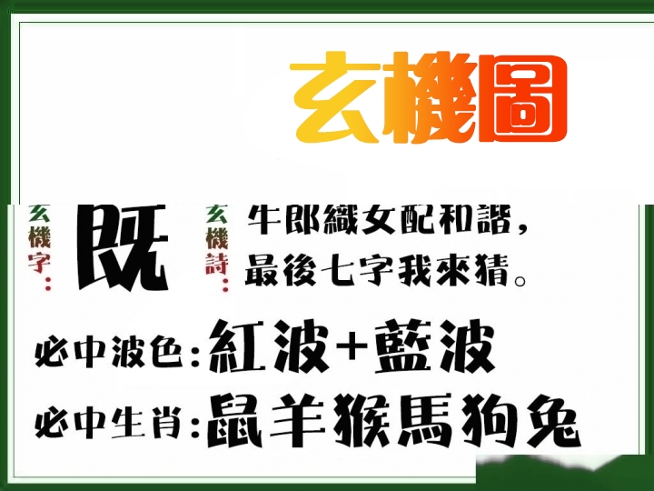 | 335期: ⑦肖 | 马蛇虎狗兔鸡鼠 | ????中 |