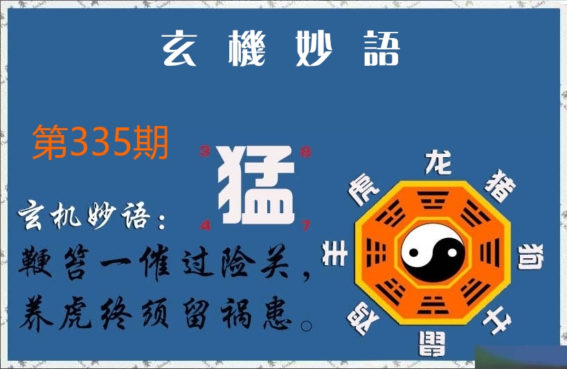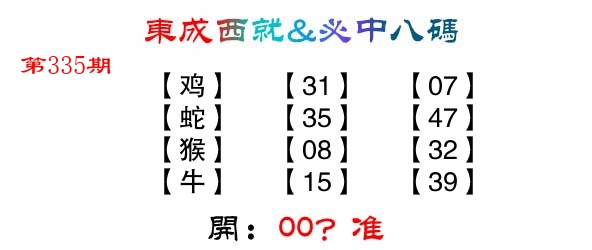 | 335期: ⑧肖 | 马蛇虎狗兔鸡鼠牛 | ????中 |