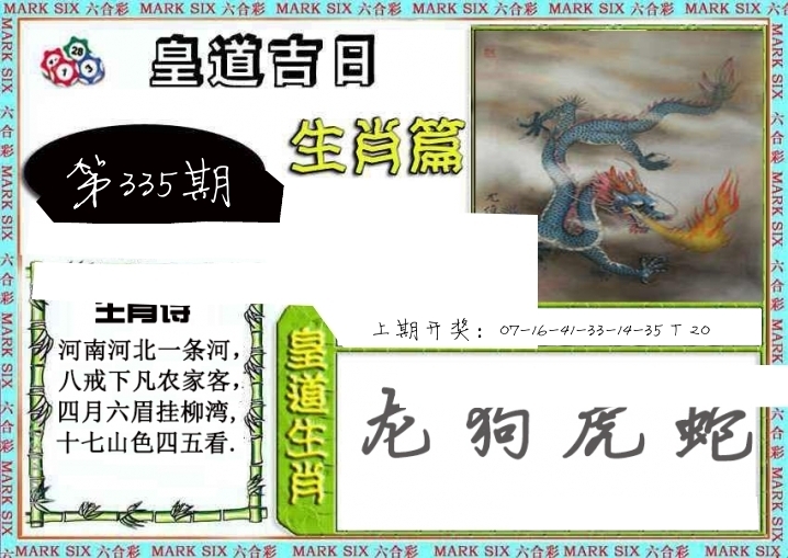 | 335期: ⑥肖 | 马蛇虎狗兔鸡 | ????中 |